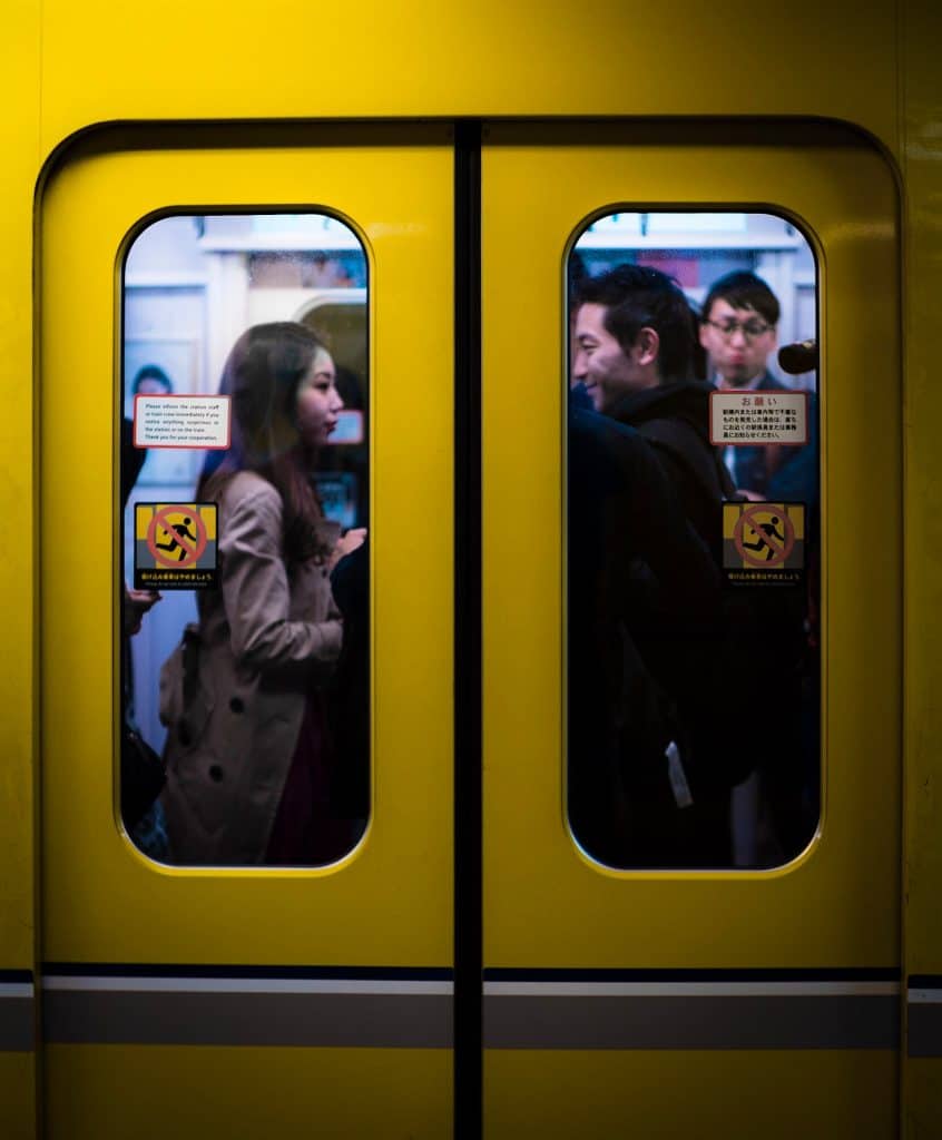 I was on the way somewhere, but because I carry my camera everywhere especially in Tokyo, I was just trying to snap some random photos on the train station. I like the yellow trains, it’s a nice aesthethic. And on this day, I was using a totally manual lens with a very thin f0.95 depth of field, so I was putting all my effort into nailing the focus and the composition with this unforgiving manual lens. I didn’t have time to look at the scene unfolding. And I literally only took about 3 photos total in the station. So I wish I could take credit for capturing this moment, but really it was just pure luck.